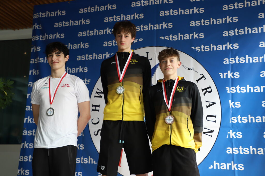 Auch der Nachwuchs zeigte starke Leistungen: Livia Hechenbichler-Wiesner (AK11) gewann Bronze über 100 m Rücken und belegte über 200 m Lagen Platz 4. Julian Kral (AK12) holte Bronze über 100 m Brust und erreichte dreimal Platz 4 über 400 m Freistil, 100 m Freistil und 200 m Lagen. Sarah Kurzmann (AK12) rundete die Erfolge mit Bronze über 100 m Brust ab.